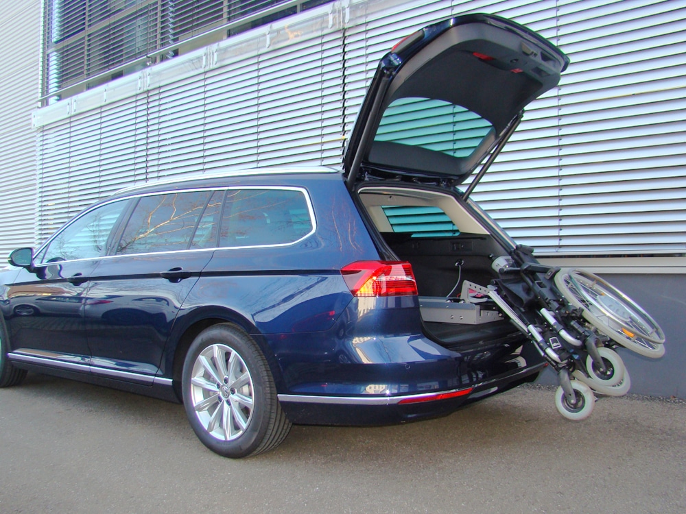 Das Rollstuhlverladesystem LADEBOY Kofferraum für die liegende Verladung von gefalteten Rollstühlen