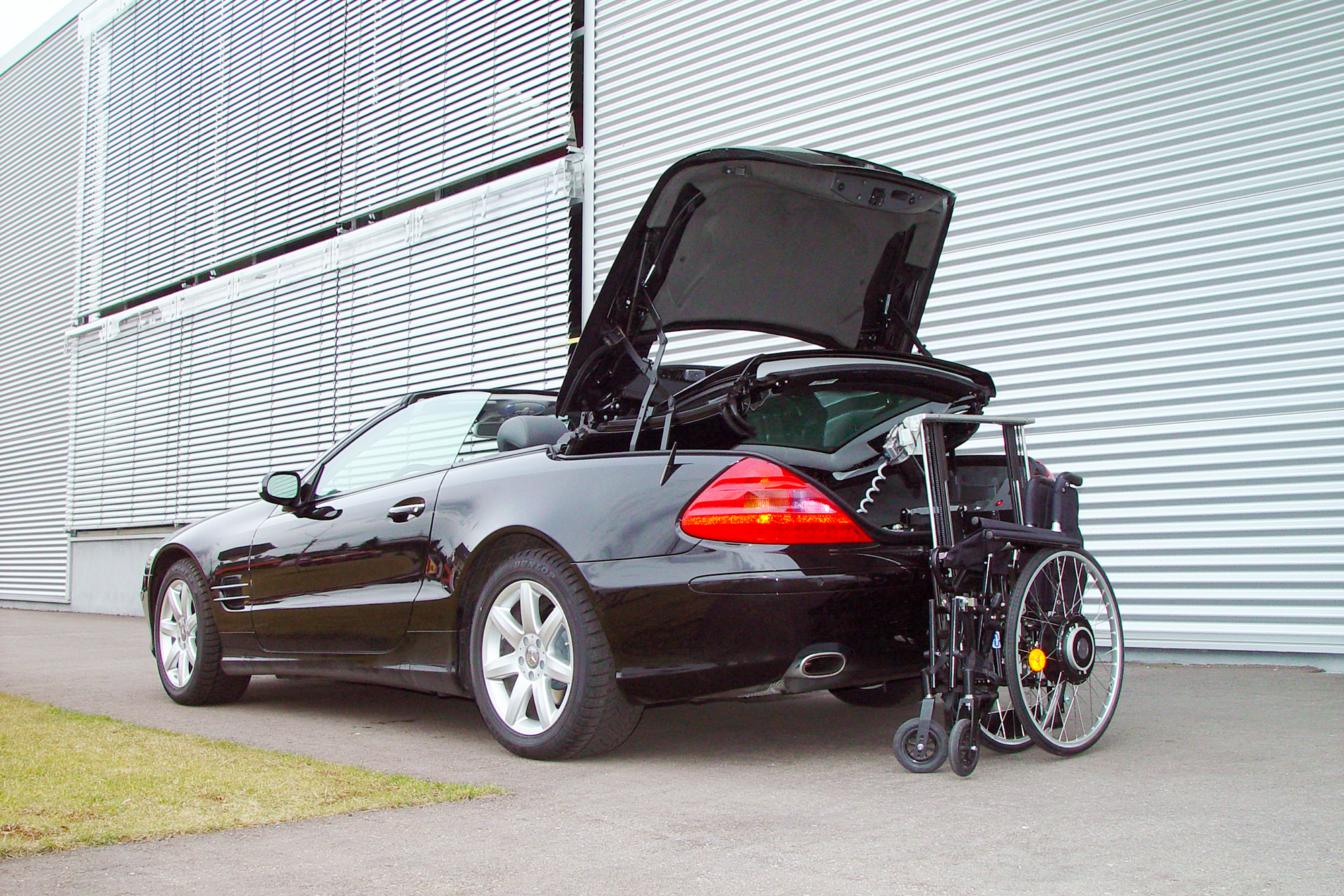 Cabrio Sportwagen mit Rollstuhlverladesystem LADEBOY im Kofferraum