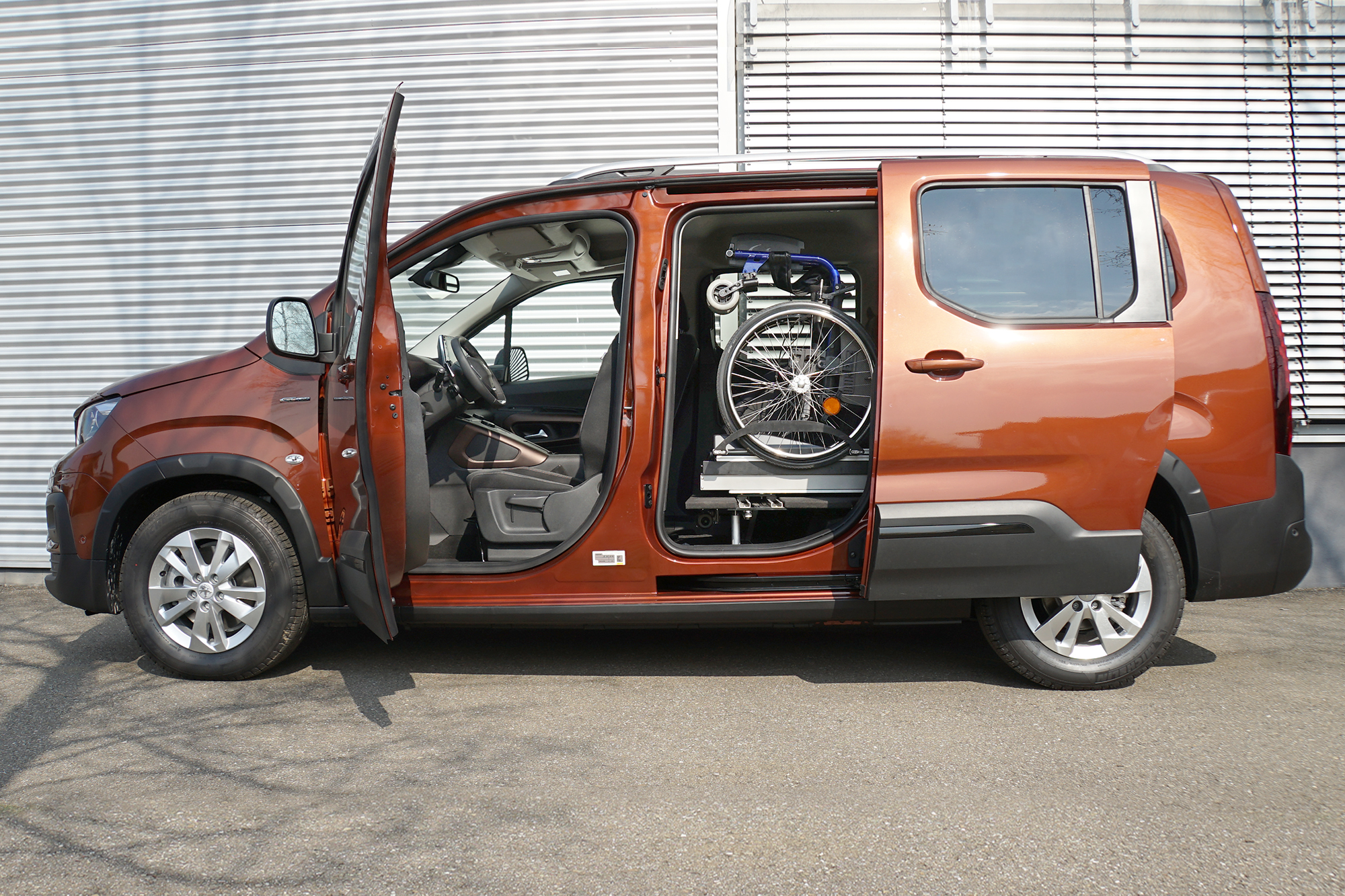 Die Rollstuhlverladehilfe für die Verladung seitlich hinter dem Fahrersitz. Das Rollstuhlverladesystem LADEBOY S2 mit Schwenkmodul für mehr Sitzplätze