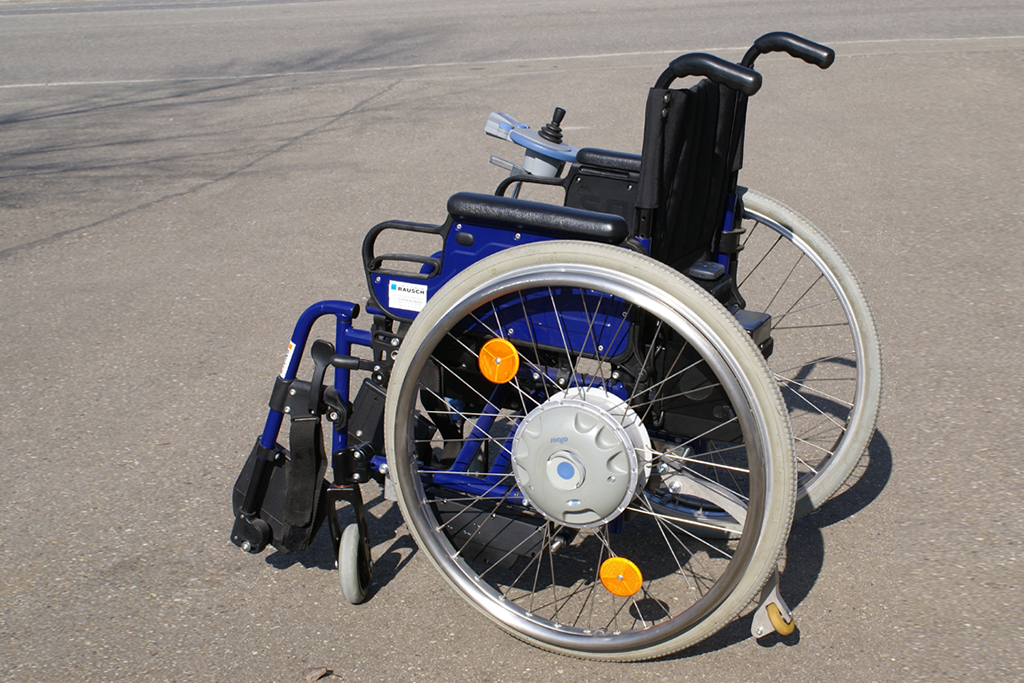 Hilfsmittel Faltboy um den Rollstuhl ohne Kraftaufwand zu falten